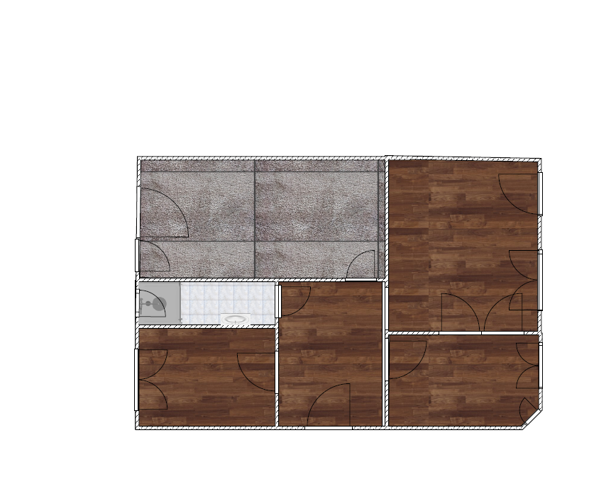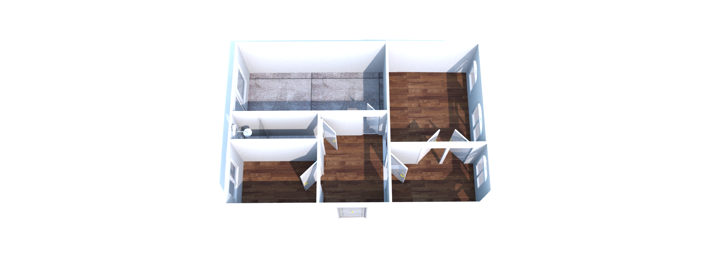 Das Schlafzimmer / Büro ist durch eine Doppeltür mit dem Wohnzimmer verbunden, welche ermöglicht, die zwei Räume zu einem Großen zu verbinden.