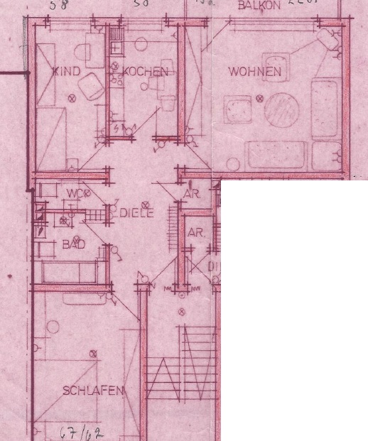 Diese führ Sie in alle Räume und somit in das Schlafzimmer, in da Badezimmer, in das Gäste-WC, in das Kinderzimmer / Büro, in die Küche, in das Wohnzimmer und in die Abstellkammer.