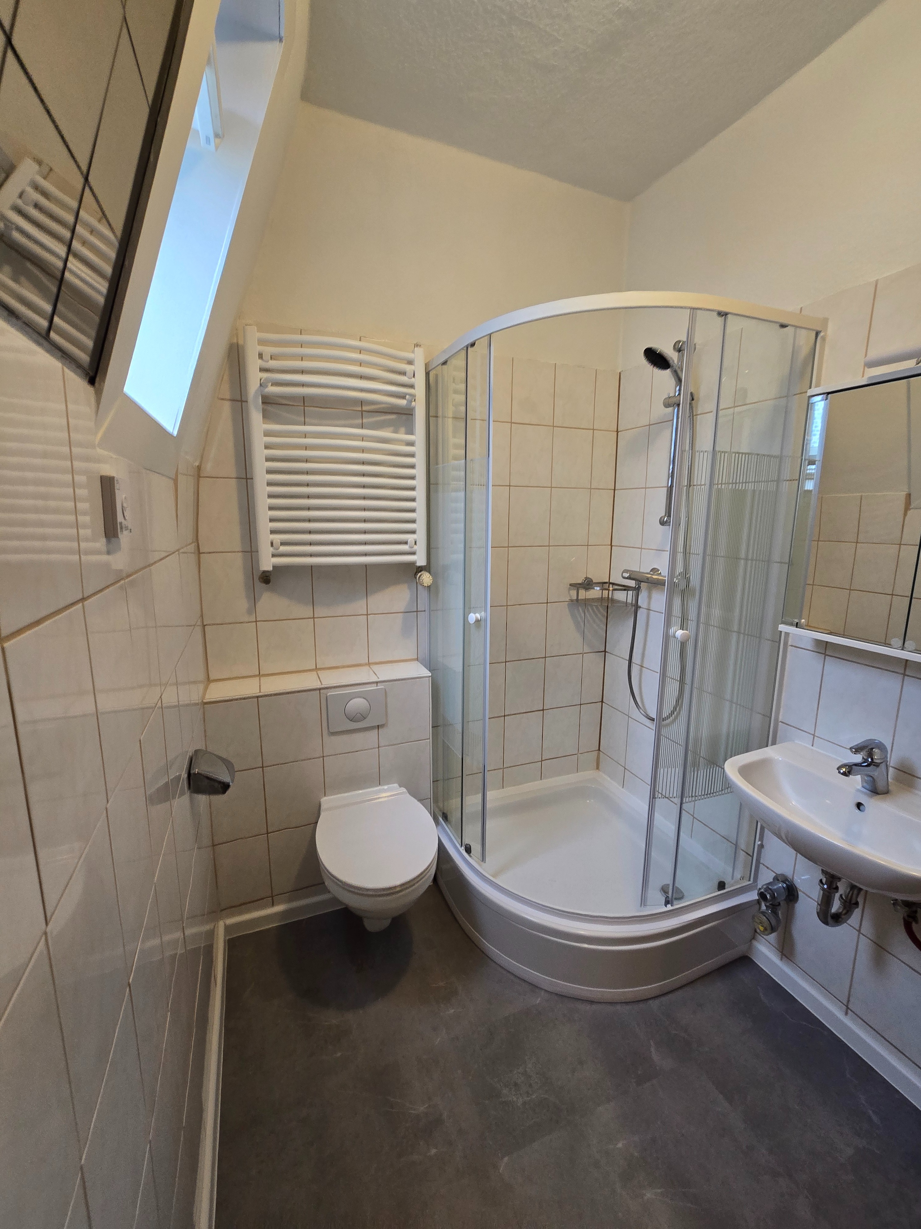 - Ausstattung des Bades Dusche, Fenster