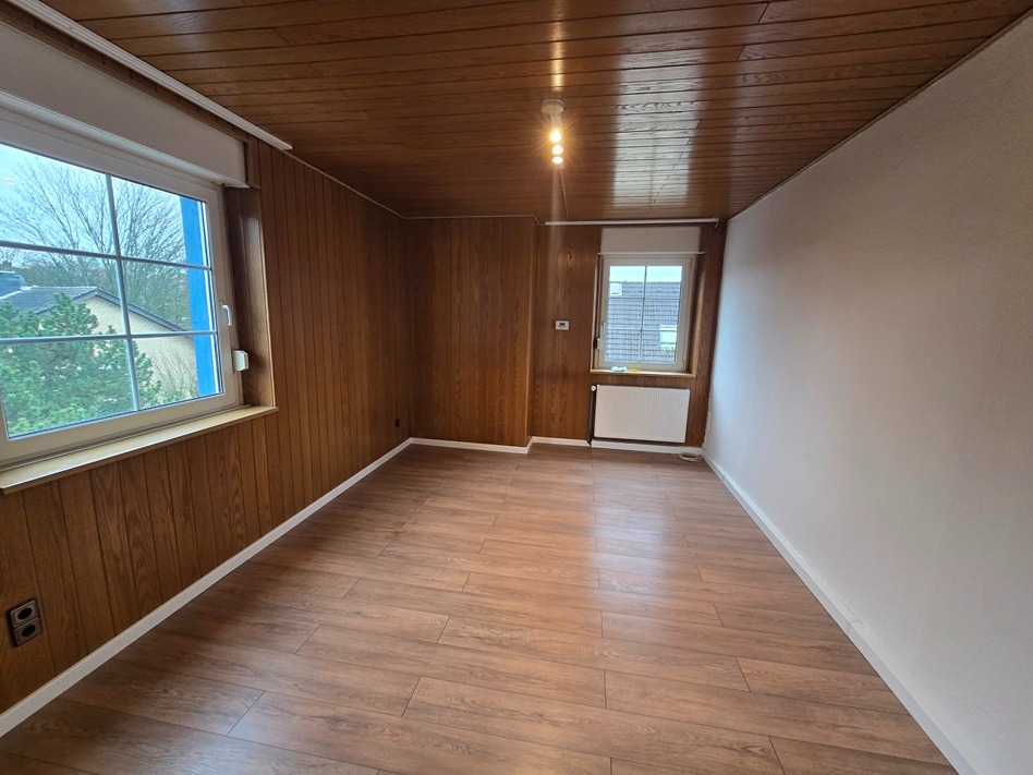 Gas-Etagenheizung inkl. Warmwasser, Duschbad gefliest mit Fenster und Handtuchheizkörper, Klick-Vinyl in der Wohnküche, Laminat in der Diele, im Schlafzimmer und im Wohnzimmer, Speicher, Waschkeller.