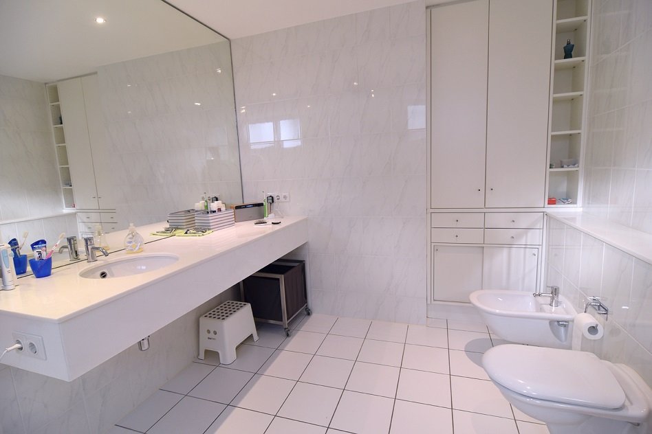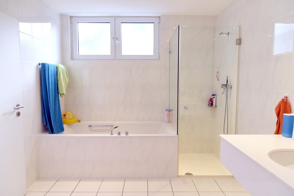 - Ausstattung des Bades Badewanne, Dusche, Fenster