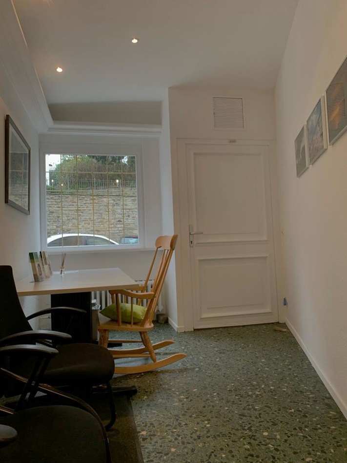 Wenn Sie reinkommen stehen Sie in der Diele, bzw. dem Wartebereich. Von hier aus gelangen Sie in den Büroraum und über die Wendeltreppe in das Untergeschoss.