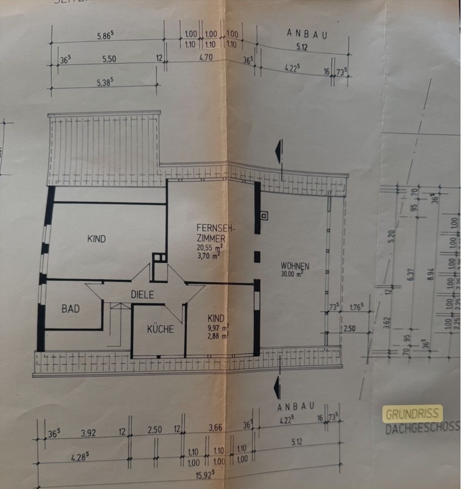 Über das Esszimmer gelangen Sie in das Wohnzimmer mit Kamin und über eine Treppe auf den ausgebauten Dachboden mit ca. 60 qm Nutzfläche.