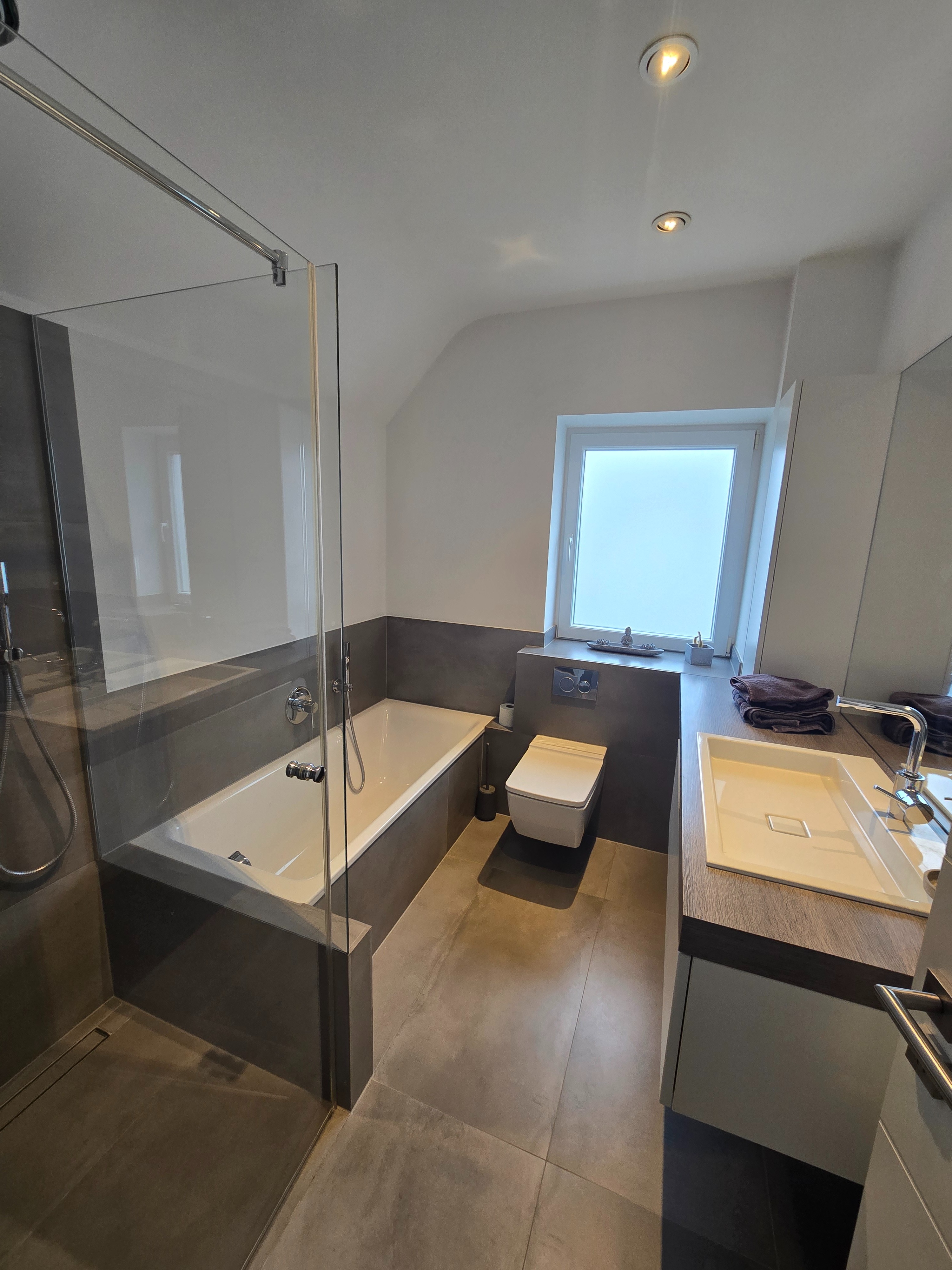 - Ausstattung des Bades Badewanne, Dusche, Fenster