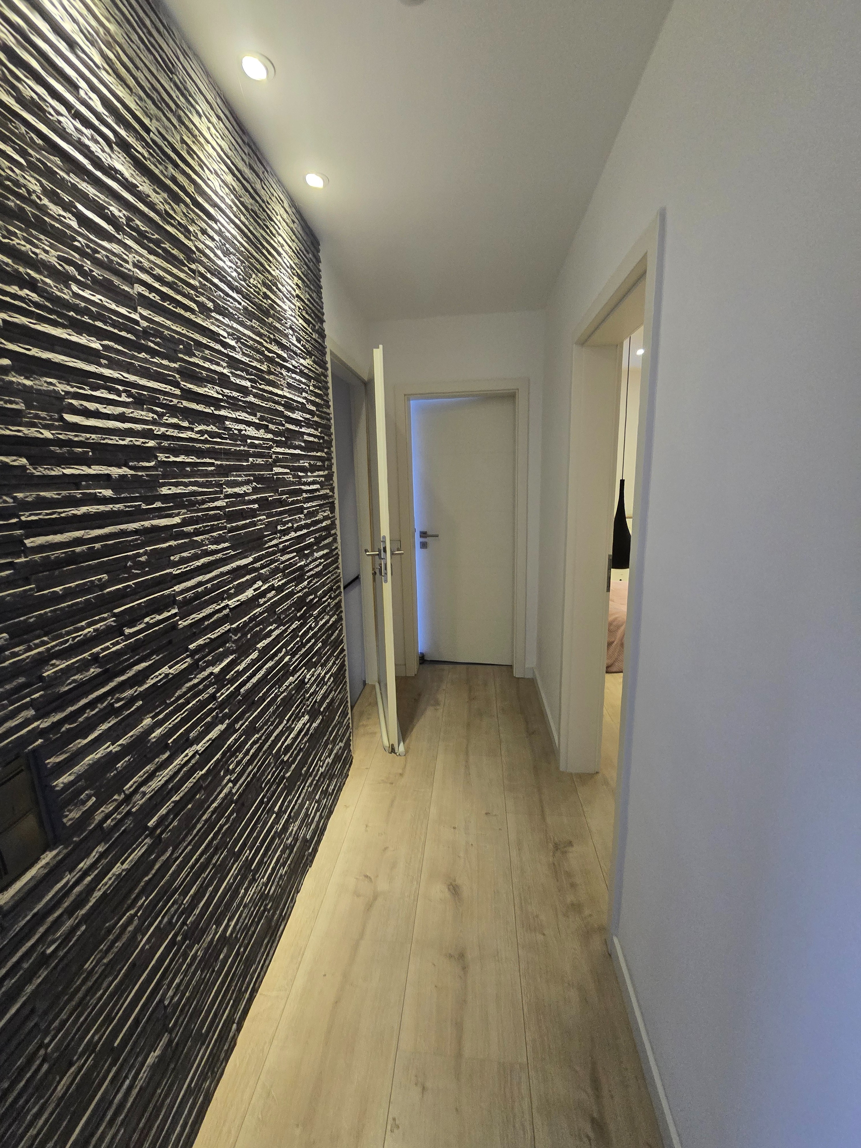 Diese führt Sie in das moderne Badezimmer, in das Schlafzimmer, in das Esszimmer, in das Kinderzimmer / Büro und in die Küche.
