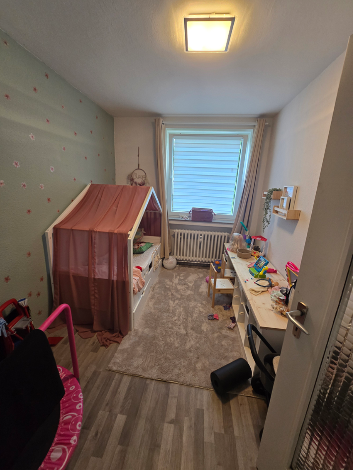 Von hier aus gelangen Sie in alle Räume und somit in das Kinderzimmer / Büro, in das Schlafzimmer, in das Badezimmer, in den Wohn-/Essbereich und in die Küche.