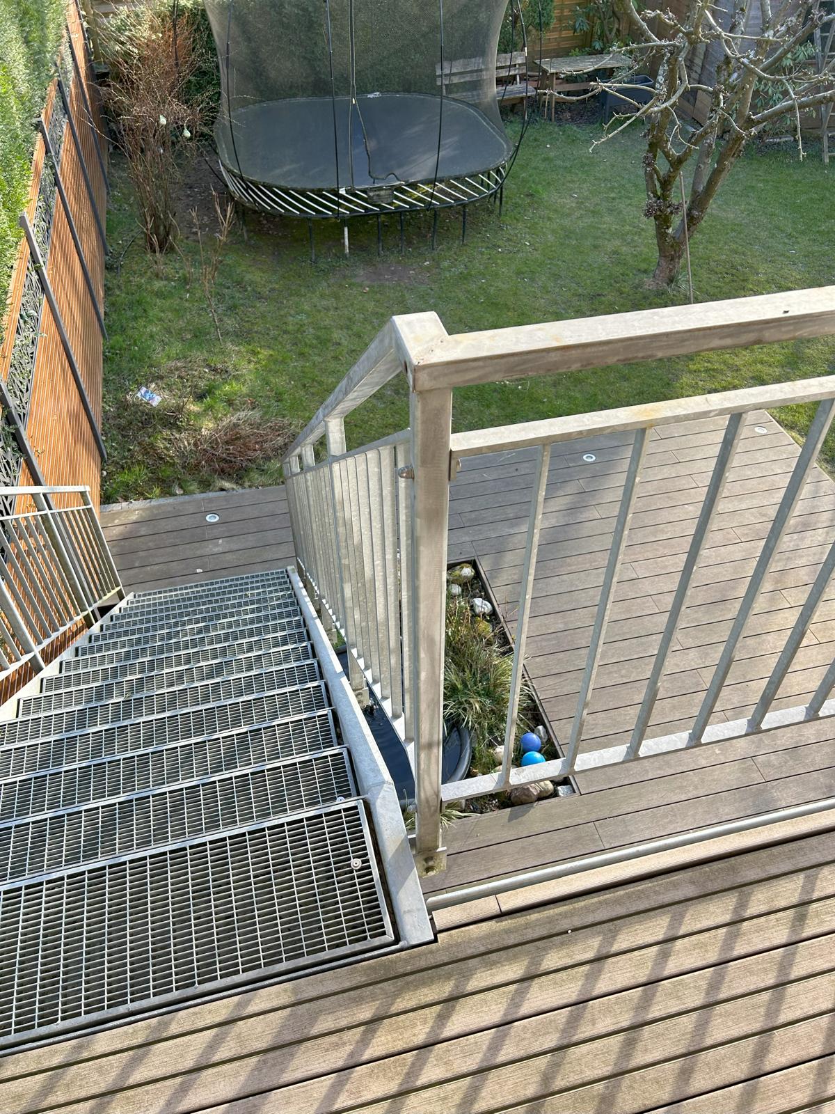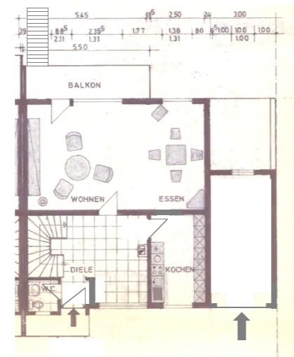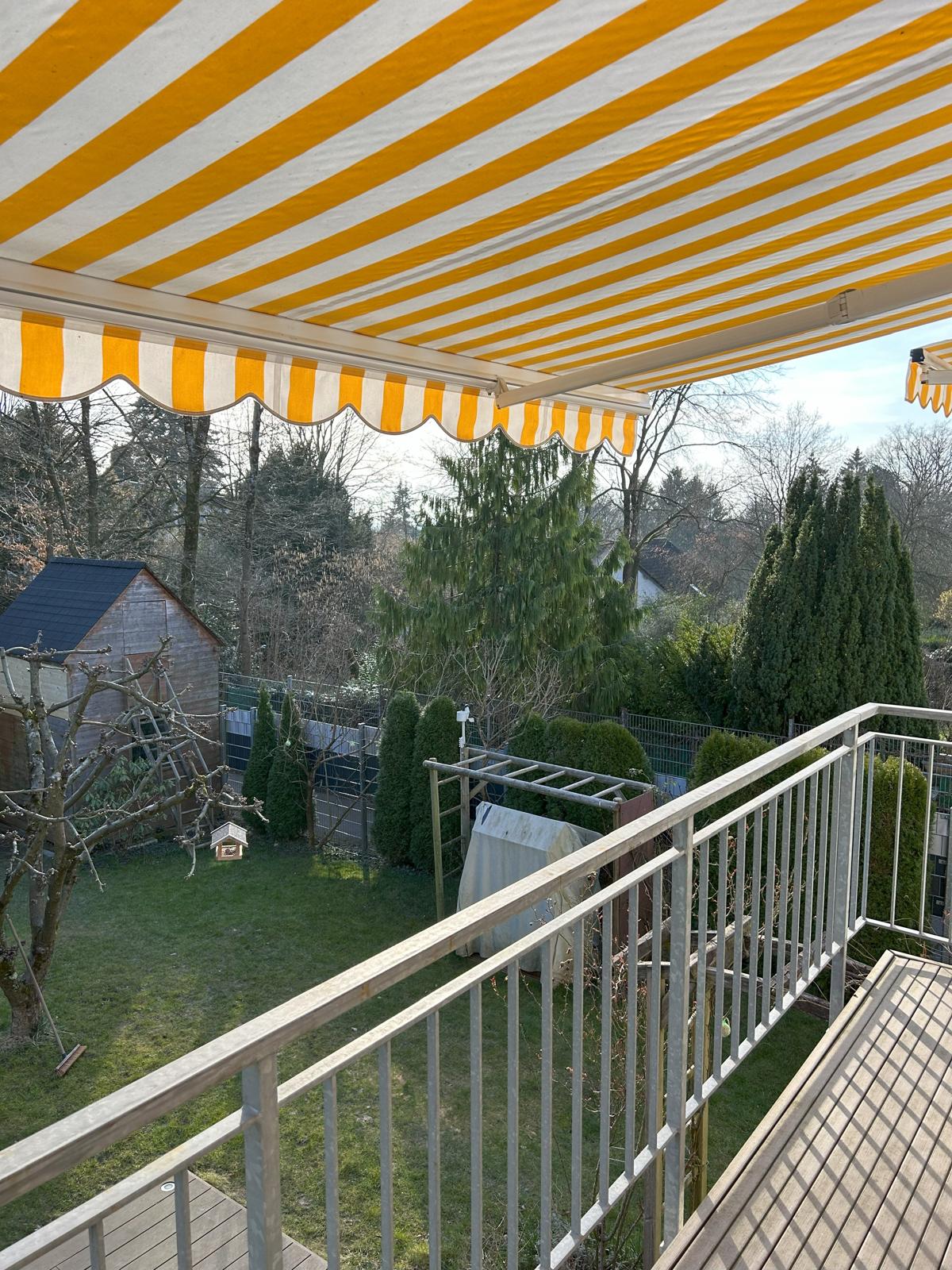 An den Wohn-Essbereich grenzt der Balkon, welcher über 2 elektrische Markisen und eine Treppe in den Garten verfügt.