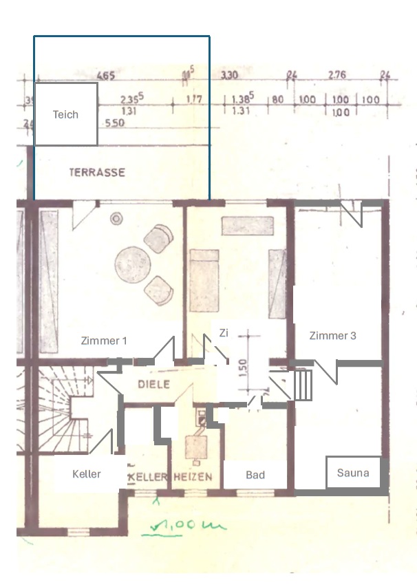 Im Untergeschoss befinden sich 2 weitere Schlafräume, ein Gästezimmer/Büro, ein Hauswirtschafsraum inkl. Sauna, ein Badezimmer, Ein Kellerraum und der Heizungsraum.
